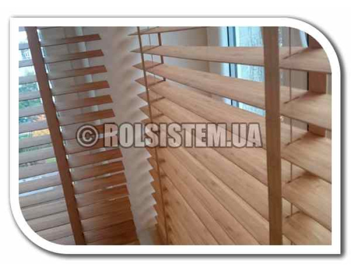 В комплектации STANDART BAMBOO жалюзи изготавливают из бамбука ширина пера 25 мм с использованием тесемочной лесенки, которая закрывает отверстия в пере обеспечивая тем самым максимальное затенение от солнца, а также стандартное управление при помощи палочки и шнура.
