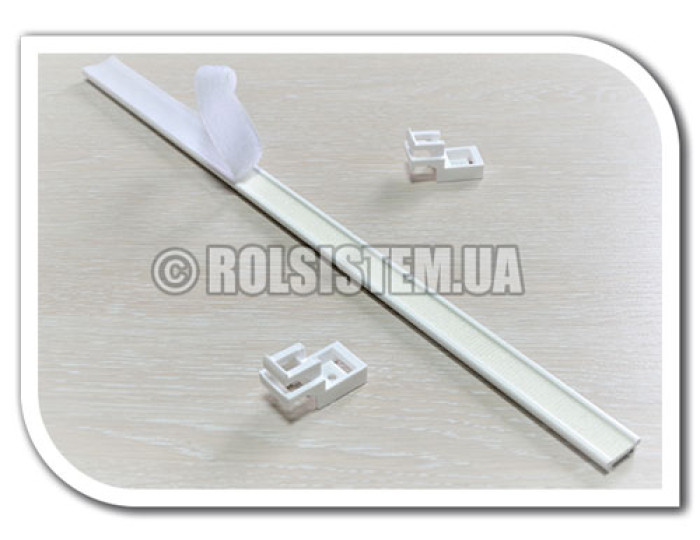 Слип карниз с липучкой — предназначен для легких ламбрекенов (вес ткани 1,2 кг/м²) без возможности их движения вдоль карниза.