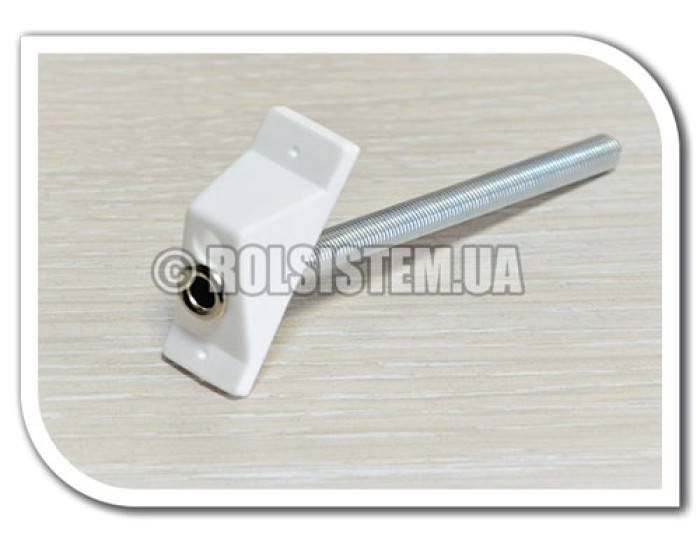 Переходник предназначен для внутрирамных жалюзи и крепится на раму деревянного окна. Для его установки предварительно в раме сверлят два отверстия: одно диаметром 6,5 мм под пружину, через которую выводится шнур, и второе чуть ниже, диаметром 4 мм, под трос управления поворотом ламелей.