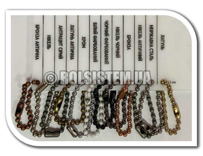 Виготовлення на замовлення металевого ланцюжка із замкнутим контуром у широкій кольоровій гамі. Використовується як декоративний елемент керування на рулонних чи римських шторах.