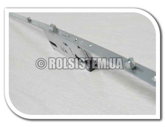 Замок-рейка із засувкою та ригелем призначений для встановлення на вхідні пластикові двері з ПВХ-профілю. Дорнмасс замка складає 35 мм, а міжосьова відстань від центру ручки до серцевини — 85 мм. Загальна довжина механізму — 2170 мм, що робить його придатним для будь-яких дверних конструкцій.