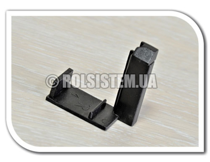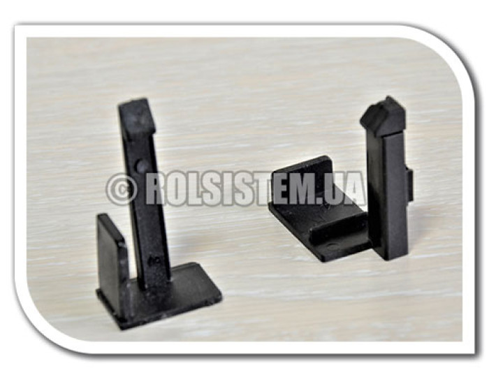 Пластмассовая заглушка надевается на алюминиевые направляющие рулонной москитной сетки для жесткой фиксации. Конфигурация заглушки и продольный паз в нижней планке москитной сетки обеспечивают это сцепление.