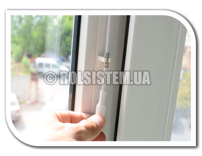 Держатель устанавливается на створку окна с помощью самореза на уровне металлического хромированного крепления. Подходит только для внутрирамного типа и используется совместно с ручкой вращения горизонтальных жалюзи.
